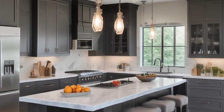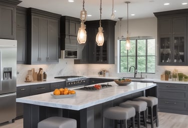 Complete custom kitchens with cabinets and stone countertops made to fit.